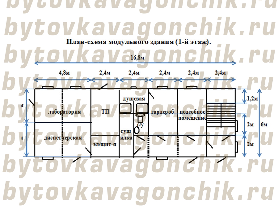 Блок –модуль 16,8*6,0*2,5 из  БК 6,0*2,4*2,5 -7шт.     (1-й этаж)