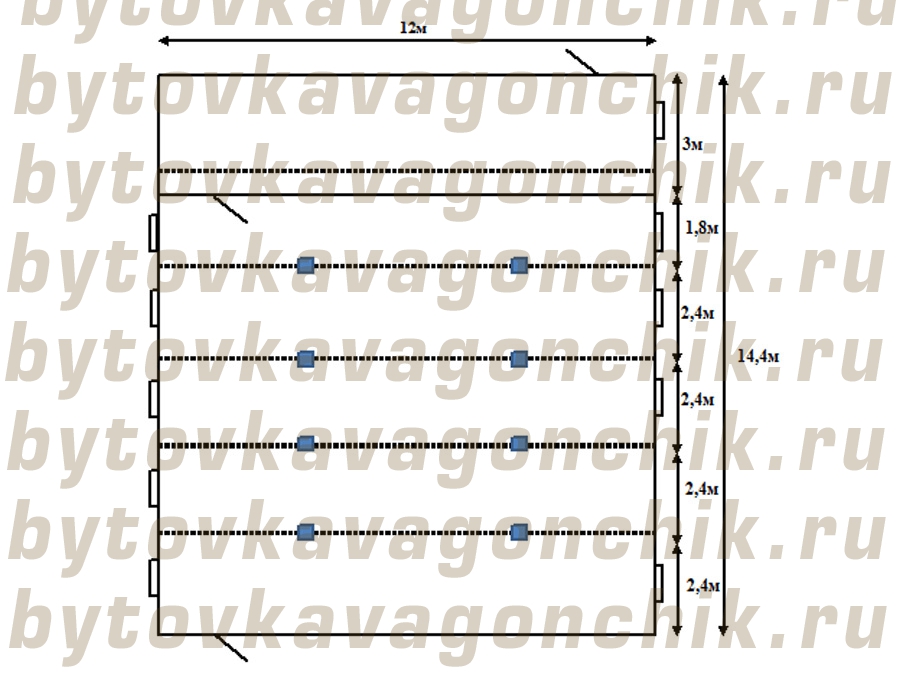 - отделка внутренняя: стены, потолок- панели ПВХ белые;