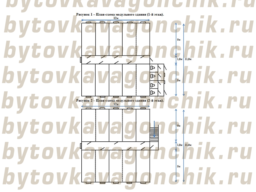 1.Блок –модуль 12*11,8*2,5м  из  БК 5,0*2,4*2,5 -10шт.  (1-й этаж)