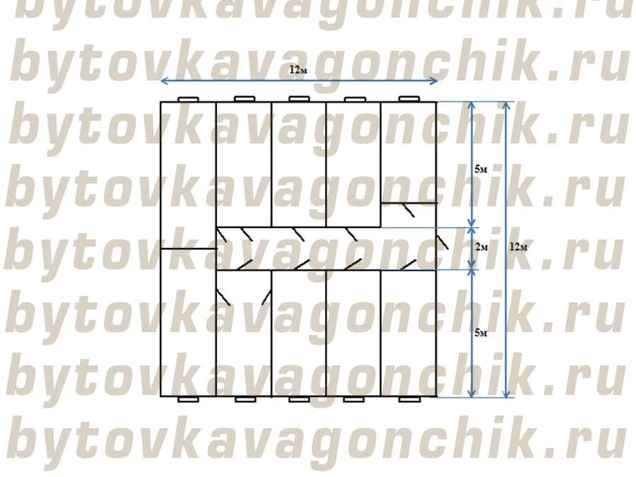 Блок-модуль 12,0*12,0*2,5м (БК 5,0*2,4*2,5 -7шт.;  БК 6,0*2,4*2,5 – 2шт. .; БК 4,0*2,4*2,5 – 1шт.)