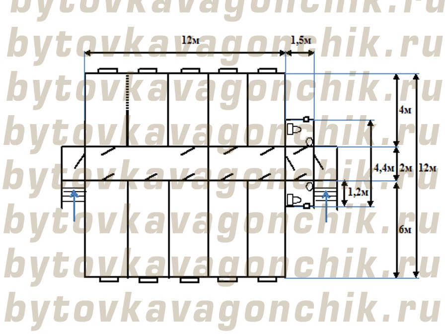4.Блок -контейнер  БК 4,4*1,5*2,5 -1шт.     (сан. узел/тамбур)