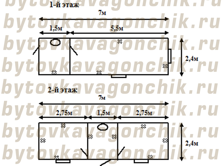 2.Блок -контейнер  БК 7,0*2,4*2,5 -1шт.   (2-й этаж)