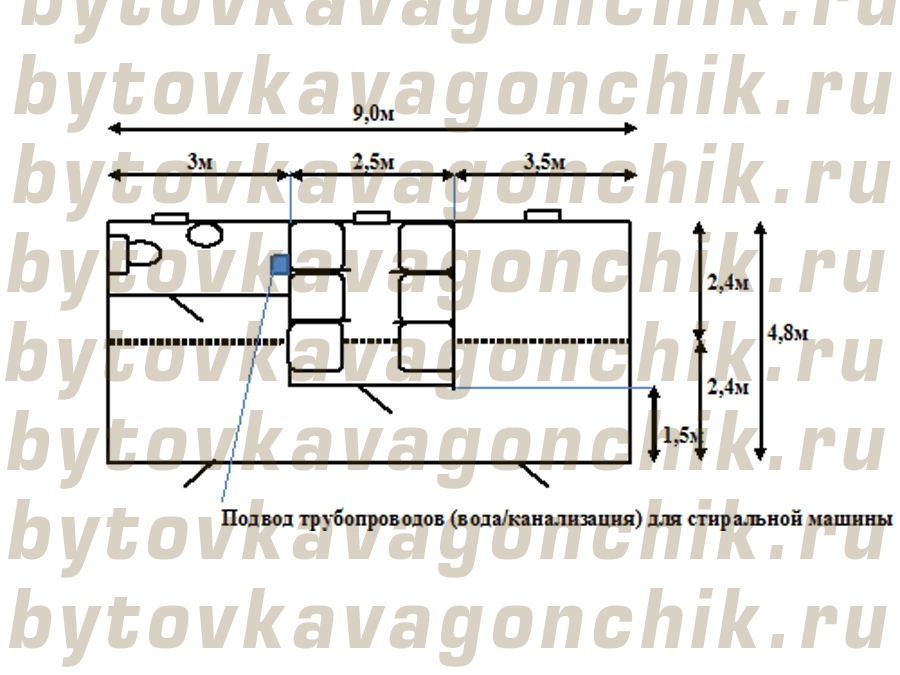 ГлавнаяПроекты Коммерческие предложения → Модульная душевая из 2-х шт БК 9м